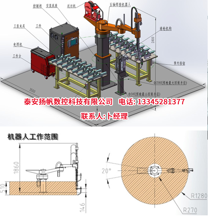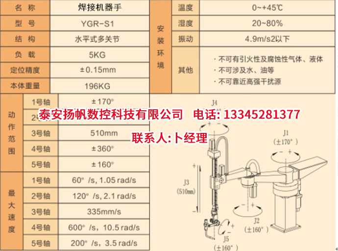 定位精度:±0.15mm 焊接工作半径:1280mm 焊接工作高度:500mm 外形尺寸(长×宽×高):2000mm×500mm×1600mm 重量:196kg