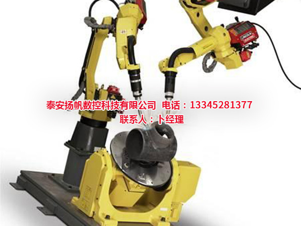 (6)采用合理的山东变位机位置、焊枪姿态、焊枪相对接头的位置。工件在变位机上固定之后,若焊缝不是理想的位置与角度,就要求编程时不断调整变位机,使得焊接的焊缝按照焊接顺序逐次达到水平位置。同时,要不断调整机器人各轴位置,合理地确定焊枪相对接头的位置、角度与焊丝伸出长度。工件的位置确定之后,焊枪相对接头的位置必须通过编程者的双眼观察,难度较大。这就要求编程者善于总结积累经验。