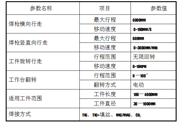 工件装卡采用轴管中心孔三爪气动卡盘定位,尾座气动顶紧方式;工件回转采用步进电机调速、恒转矩输出,速度平稳;机头横向和纵向电机采用伺服电机驱动,使用螺旋焊接范围宽,速度平稳;尾座沿纵向可调,可适应多品种焊接。焊接实施等功能均由控制盒的按钮实现,操作简单,便捷,操作采用人机界面可进行参数的更改,数控焊接专机参数的修改可通过触摸式按键,方便及时的输入;该焊接专机以松下可编程序控制器为核心组成自动焊接控制系统,自动化程度高,提高工作效率,减少焊接变形。