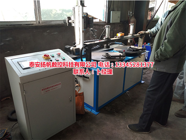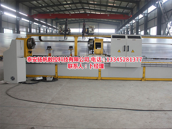 工件装卡采用轴管中心孔三爪气动卡盘定位,尾座气动顶紧方式;工件回转采用步进电机调速、恒转矩输出,速度平稳;机头横向和纵向电机采用伺服电机驱动,使用螺旋焊接范围宽,速度平稳;尾座沿纵向可调,可适应多品种焊接。焊接实施等功能均由控制盒的按钮实现,操作简单,便捷,操作采用人机界面可进行参数的更改,参数的修改可通过触摸式按键,方便及时的输入;该山东焊接专机以松下可编程序控制器为核心组成自动焊接控制系统,自动化程度高,提高工作效率,减少焊接变形。